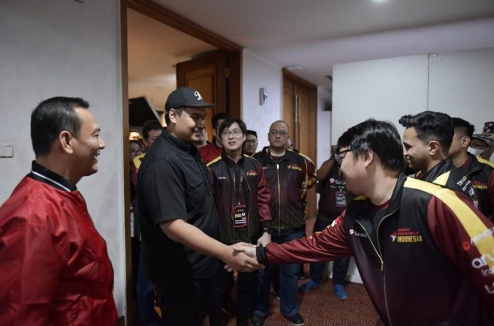 SUARATERKINI, Jakarta – Menteri Pemuda dan Olahraga Republik Indonesia (Menpora RI) Dito Ariotedjo terus memberikan semangat kepada para atlet Indonesia yang akan berjuang di SEA Games 2023 Kamboja. Menpora Dito batu-baru ini mengunjungi pelatnas timnas esports Indonesia di Hotel Belezza, Jakarta.