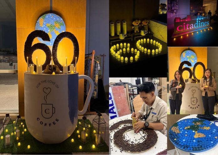 Mengusung konsep khas hotel bertajuk “For the Love of Coffee”, perayaan Earth Hour tahun ini tampil berbeda dengan menghadirkan dekorasi berkelanjutan yang kreatif. Beragam elemen dekorasi dibuat dari bahan dasar biji kopi serta material daur ulang seperti tutup botol, papan triplek, kertas bekas, LED strip, hingga berbagai barang yang sudah tidak terpakai di area hotel.