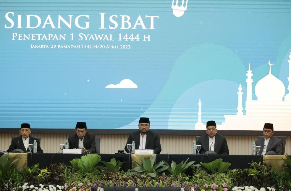 “Sidang isbat secara bulat menetapkan 1 Syawal 1444 H jatuh pada hari Sabtu, 22 April 2023,” ujar Menag dalam konferensi pers yang digelar usai Sidang Isbat 1 Syawal 1444H.